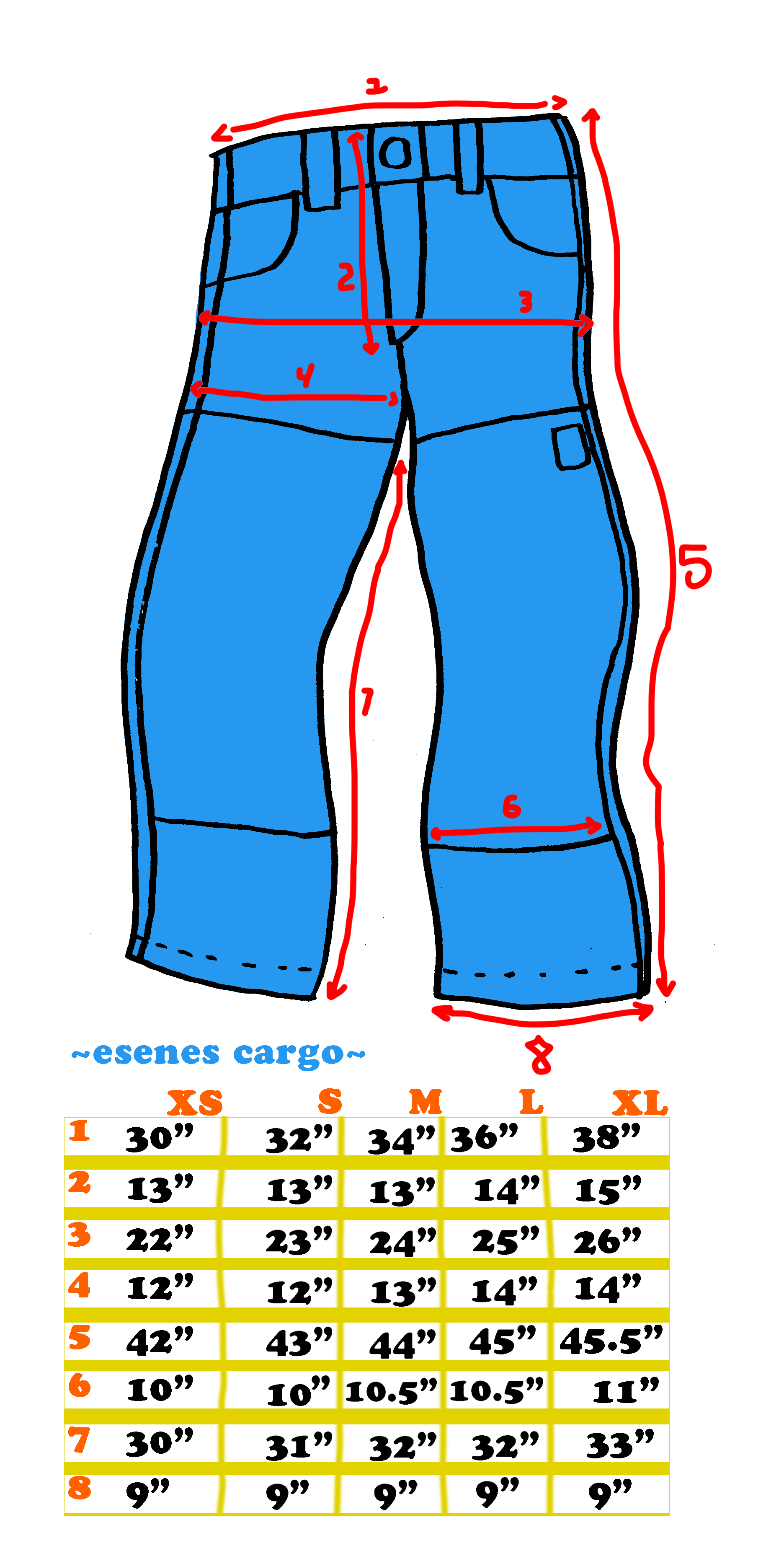 100% Cotton canvas - Utility Pants with double knee patch, front pockets, square back pockets.